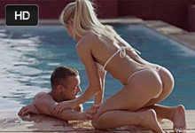 Krásna blondínka Cecilie: Romantická súlož pri bazéne na exotickej dovolenke