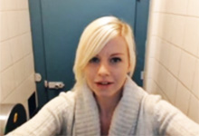 Rozkošná blondínka vytečie pri tajnej masturbácii v záchodovej kabínke