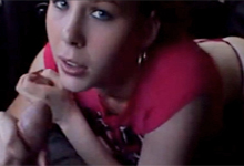 Orálny sex na prednom sedadle s koketnou červenovláskou