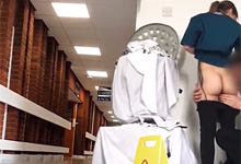 Nadržaná zdravotná sestrička trtká na nemocničnej chodbe – amatérske porno