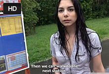 Krásna čiernovlasá lolita si zasúloží za prachy cestou za priateľom – české porno